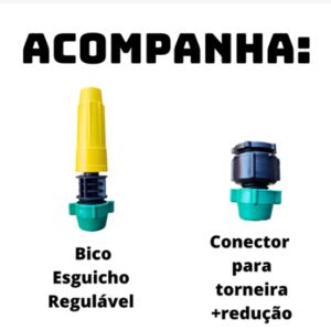 Acompanha esguicho regulável para diferentes intensidades de jato e conector de torneira com encaixe seguro, sem vazamentos. Um produto pensado para uso doméstico e profissional.