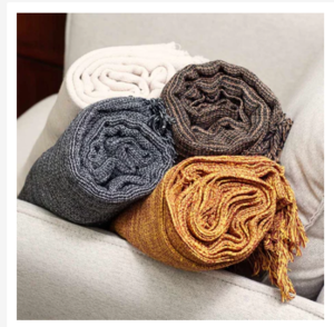 Combine a manta com almofadas em cores contrastantes para criar um ambiente moderno e acolhedor na sua sala.